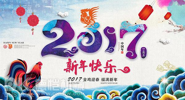 一縷豪情,灑向天際,幸運點點滴滴;一腔熱血,奔赴事業,輝煌燦燦爛爛;一絲笑容,渲染生活,幸福甜甜蜜蜜;一聲祝福,寄往新年,工作順順利利!新春賀喜!佛山市順德區德愷機械有限公司全體員工祝各位同仁、合作伙伴、社會各界朋友們2017新年快樂!
