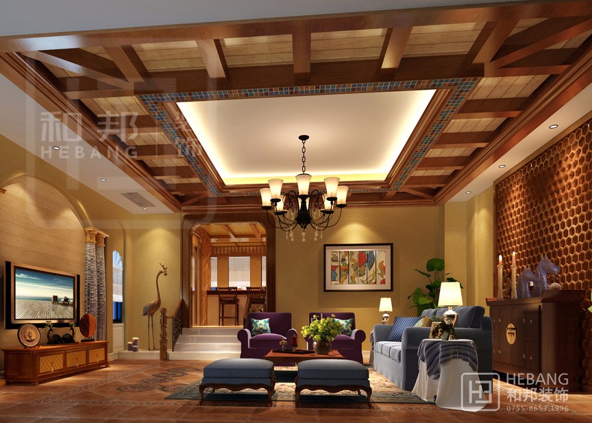 利用地中海和中式大膽結合,獨創一種與眾不同的混搭風格,更具視覺沖擊力。