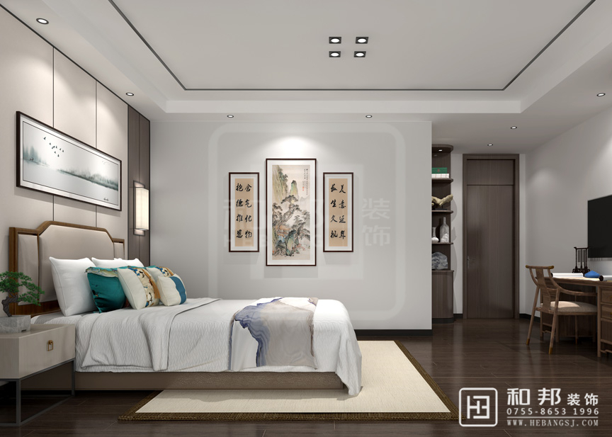 本案在空間配色上很輕松自然,既有現代設計的簡約,又契合東方傳統的古典氣韻。