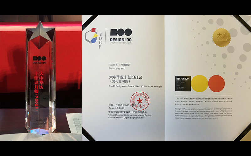 8月8日下午,第八屆設計文化節的核心內容之一——2016“設計100”頒獎盛典,在大氣莊嚴深圳會展中心簕杜鵑廳舉辦,來自全國各地的設計精英、知名學者、政府領導、地產商、材料商、行業媒體等600多人,共同見證2016大中華區設計榮耀的盛大揭曉。和邦裝飾劉擁軍總經理被評為“2016大中華區十佳設計師(文化空間類)。