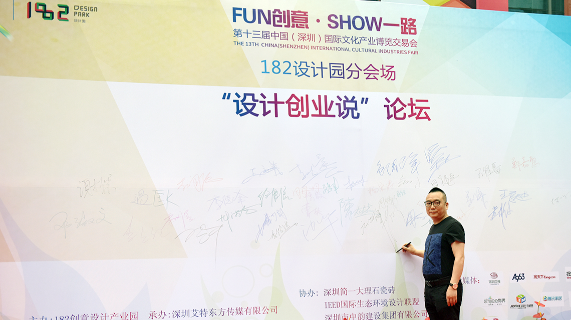 第十三屆中國(深圳)國際文化產業博覽交易會“設計創業說”論壇在深圳龍崗區182創意文化產業園隆重舉行并邀請設計行業各路大咖,共同探討新時代設計師的創業之路。和邦裝飾劉擁軍先生出席了論壇,并在會上分享了自己的創業經歷心得體會。